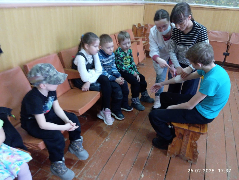 Мастер-класс «Школа первой помощи» с ребятами провели фельдшер Новоуральского ФАПа Пивкина Т.А. и руководитель кружка Ерыгина М.А.