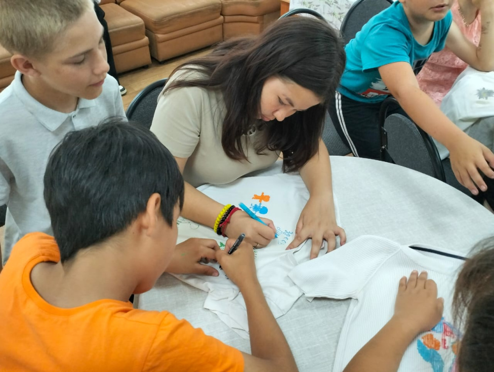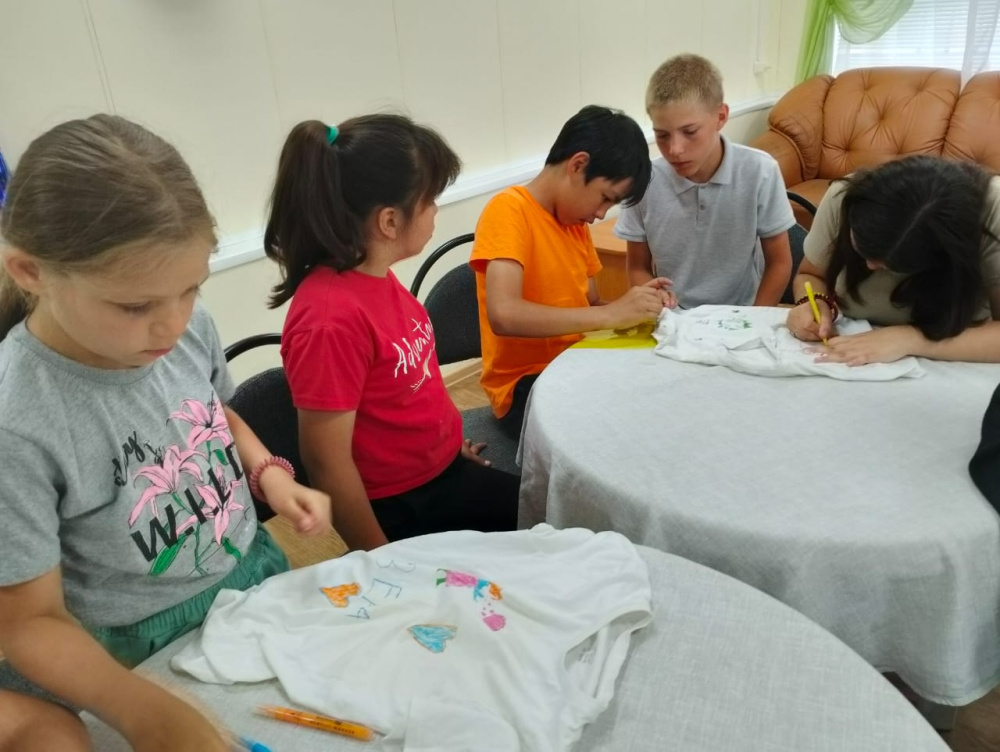 Дети совместно с родителями приняли участие в психологическом тренинге детско-родительских отношений «Дружба», который был нацелен на формирование доброжелательных внутрисемейных отношений и приобщении родителей к совместной деятельности с детьми. Вместе с мамами ребята играли, ходили змейкой, разгадывали загадки и просто веселились от души. Приятной неожиданностью для ребят стала возможность попробовать себя в роли креативного дизайнера одежды и расписать акриловыми красками футболки. Каждый смог воплотить в жизнь свои гениальные идеи, рисование вызвало большой интерес.